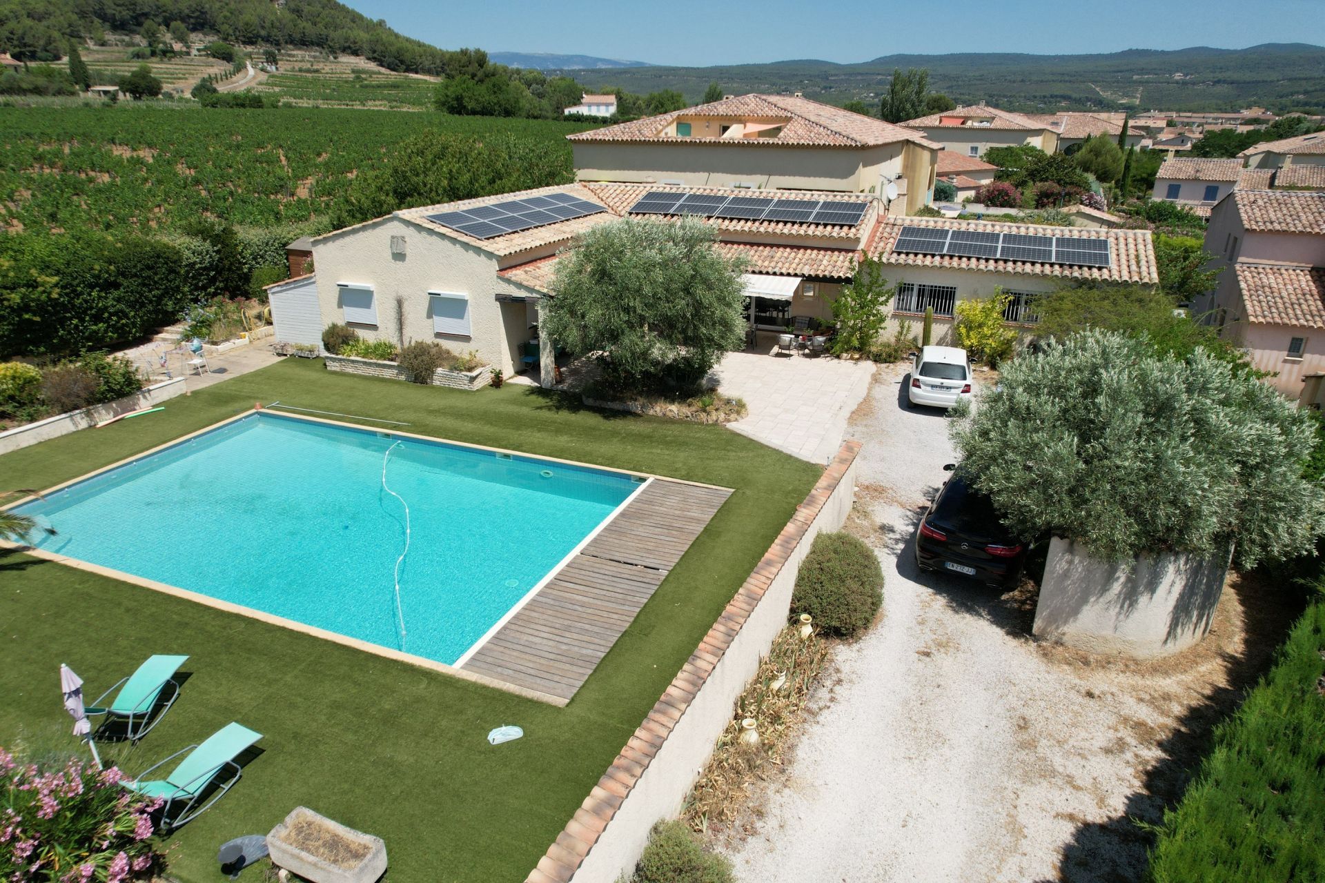 Maison très pratique car de plain pied. Jardin agréable et plat. Vue vignes